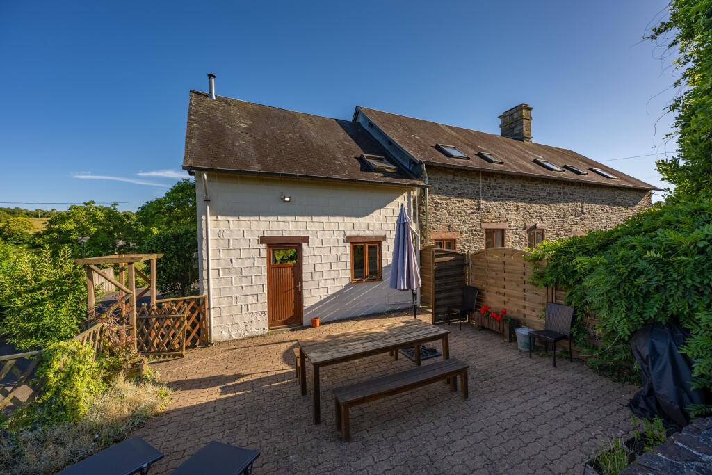 Rare opportunity to acquire a superb property in a beautiful location. It could be configured as one large family house or alternatively as a house with an attached gite which benefits from a heated pool. The property has a habitable floor area of 185m2.