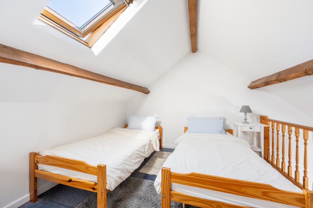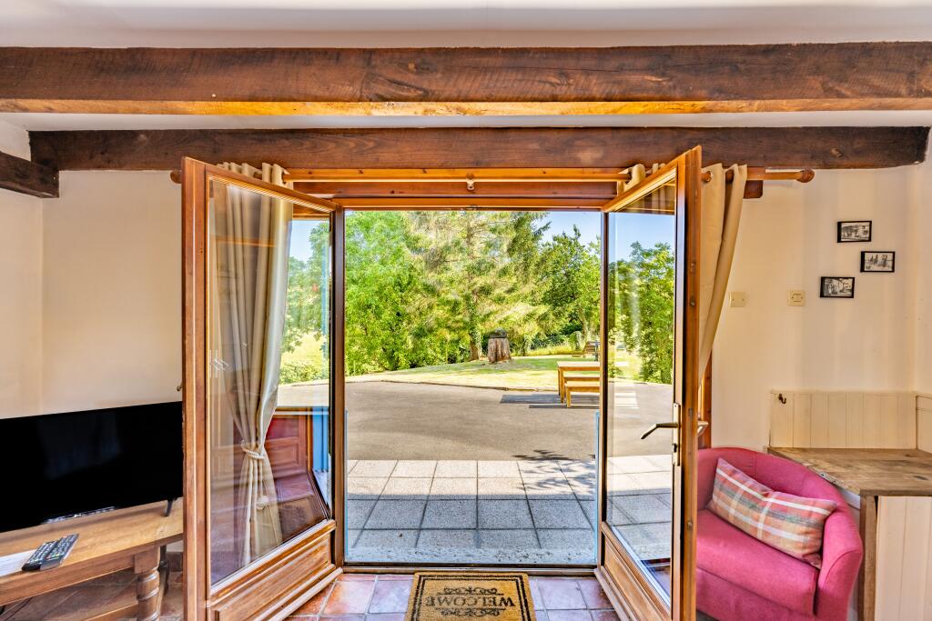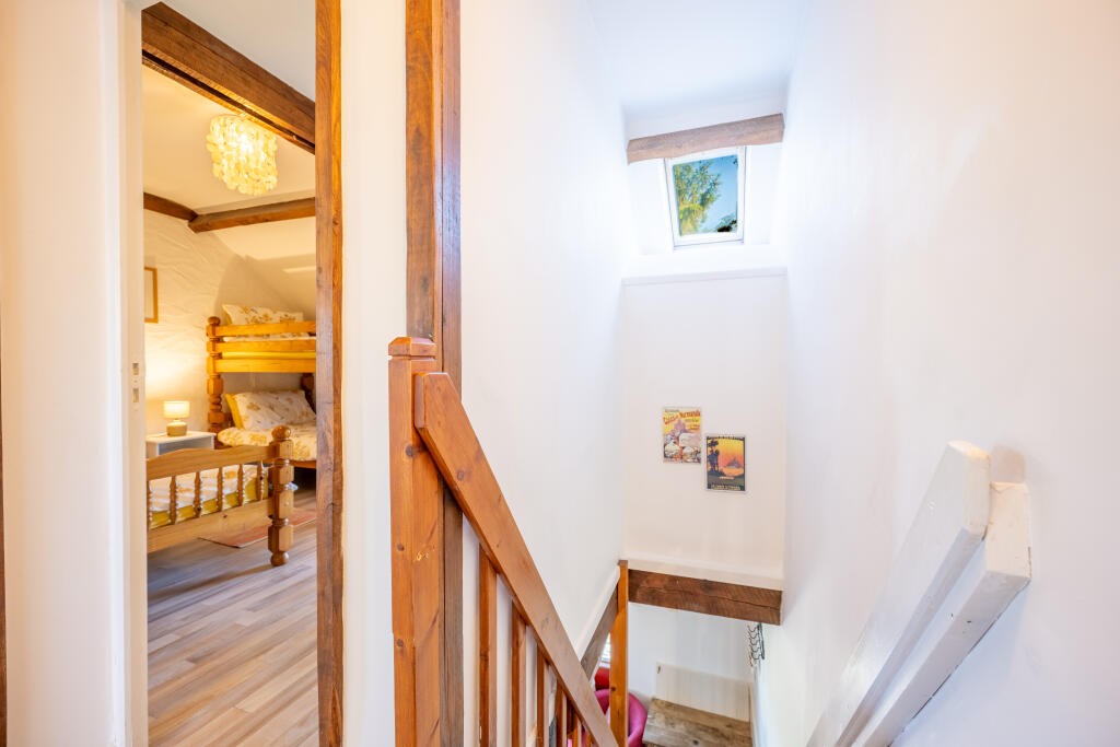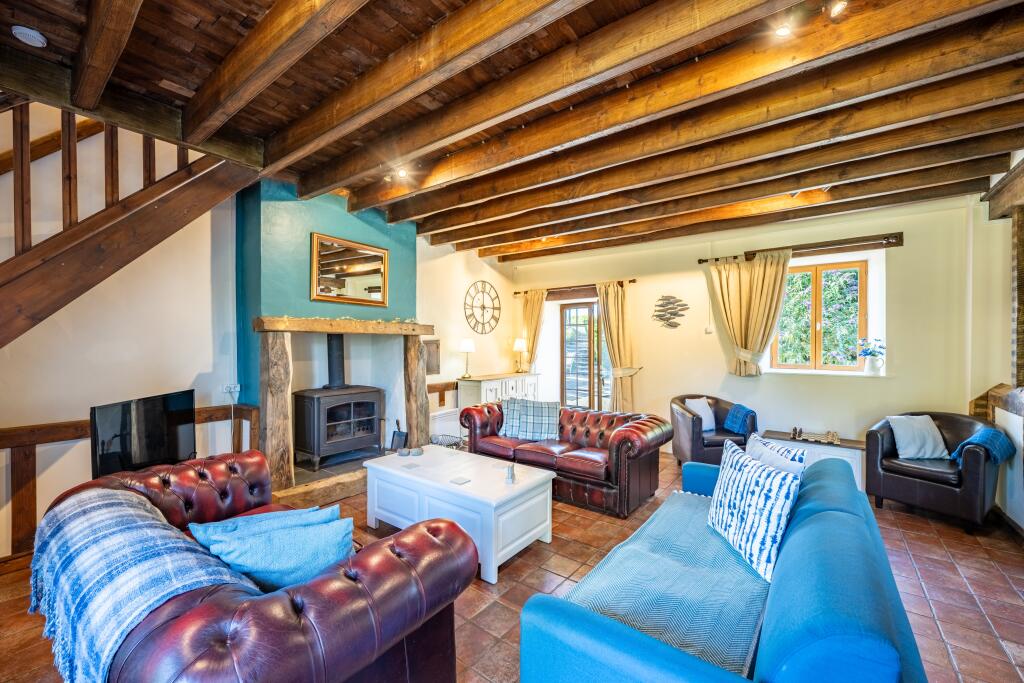 : This offers ample living space, featuring five bedrooms and two additional open-plan sleeping areas, along with three bath/shower rooms. It can be reconfigured into a three or four-bedroom setup via an adjoining door, offering flexibility. A mezzanine floor provides additional space for relaxation or accommodation.The ground floor is open planned but has been meticulously designed into three main areas. The lounge area boasts a large fireplace and wood-burning stove and the staircase leading to the first floor. The kitchen is equipped with modern appliances and offers ample storage and worktop space. A large range cooker, dishwasher, fridge and freezer finish the space off. The dining area comfortably seats 14-16 guests, making it ideal for large gatherings.